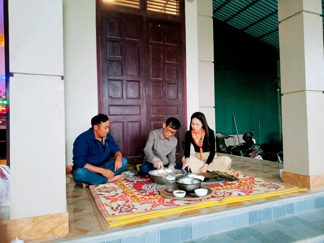 Trong hành trình, ê-kíp đã được trải nghiệm và thưởng thức giò bột – món đặc sản mang đậm hương vị quê hương Thạch Lạc. Tại cơ sở sản xuất, chủ hộ đã chia sẻ về quá trình gìn giữ nghề truyền thống, từ khâu chọn nguyên liệu, chế biến cho đến bí quyết tạo nên hương vị đặc trưng của món giò. Những câu chuyện mộc mạc, chân thành không chỉ đưa khán giả đến gần hơn với đời sống lao động của người dân mà còn cho thấy nỗ lực gìn giữ nét văn hóa ẩm thực địa phương.