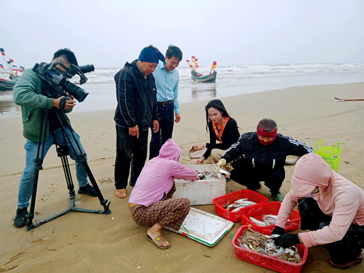 Rời khu dân cư kiểu mẫu, đoàn tiếp tục đến biển Thạch Lạc – điểm dừng chân quen thuộc trong tour du lịch trải nghiệm của xã. Không khí nhộn nhịp tại bến cá, những đoàn tàu thuyền cập bến mang theo nguồn hải sản phong phú đã phản ánh sinh kế gắn với biển khơi của người dân nơi đây. Đây cũng là nguồn tài nguyên quan trọng để Thạch Lạc phát triển các sản phẩm du lịch trải nghiệm nghề biển trong thời gian tới.