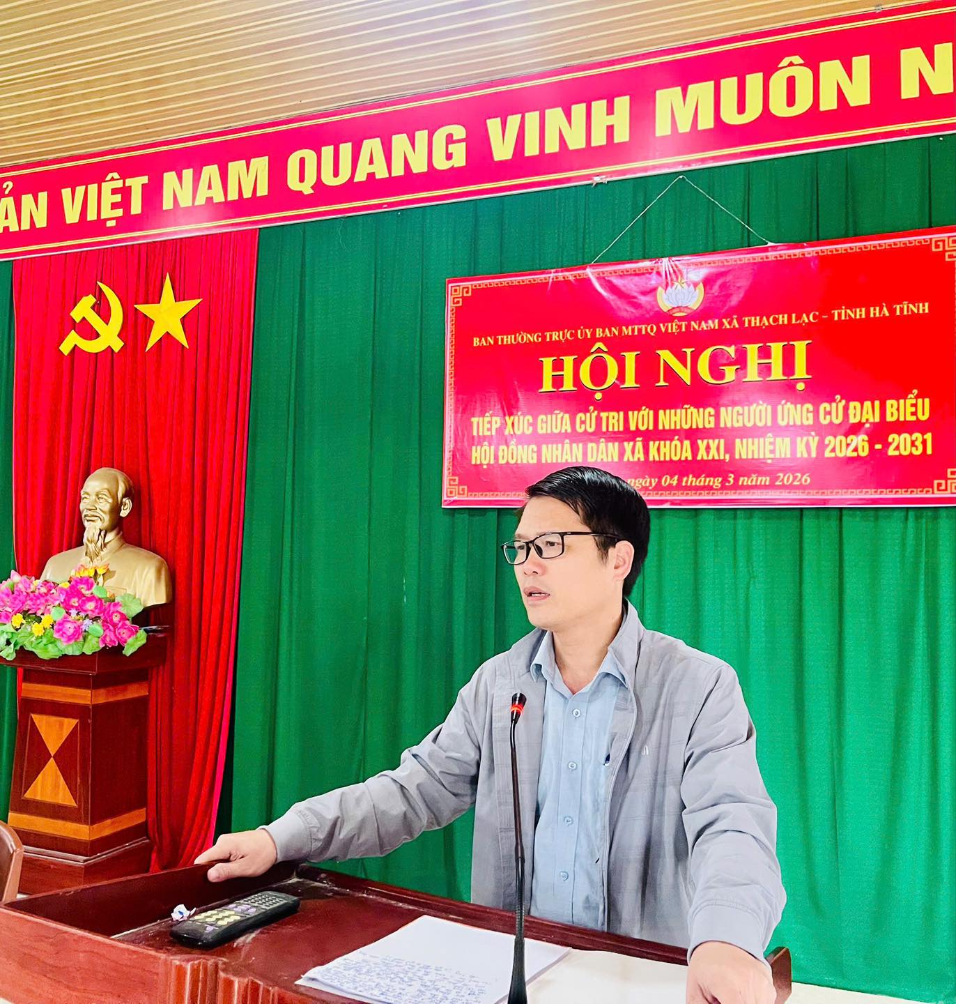 Tại điểm bầu cử thôn Thanh Quang có 05 đồng chí ứng cử viên đại biểu HĐND xã khóa XXI, nhiệm kỳ 2026–2031. Tại hội nghị, các ứng cử viên đã trình bày chương trình hành động của mình, thể hiện tinh thần trách nhiệm, tâm huyết và quyết tâm nếu được cử tri tín nhiệm bầu chọn sẽ nỗ lực rèn luyện, giữ mối liên hệ chặt chẽ với Nhân dân, lắng nghe và phản ánh trung thực tâm tư, nguyện vọng chính đáng của cử tri đến HĐND xã; đồng thời tích cực tham gia quyết định các vấn đề quan trọng của địa phương, góp phần xây dựng xã Thạch Lạc ngày càng phát triển.