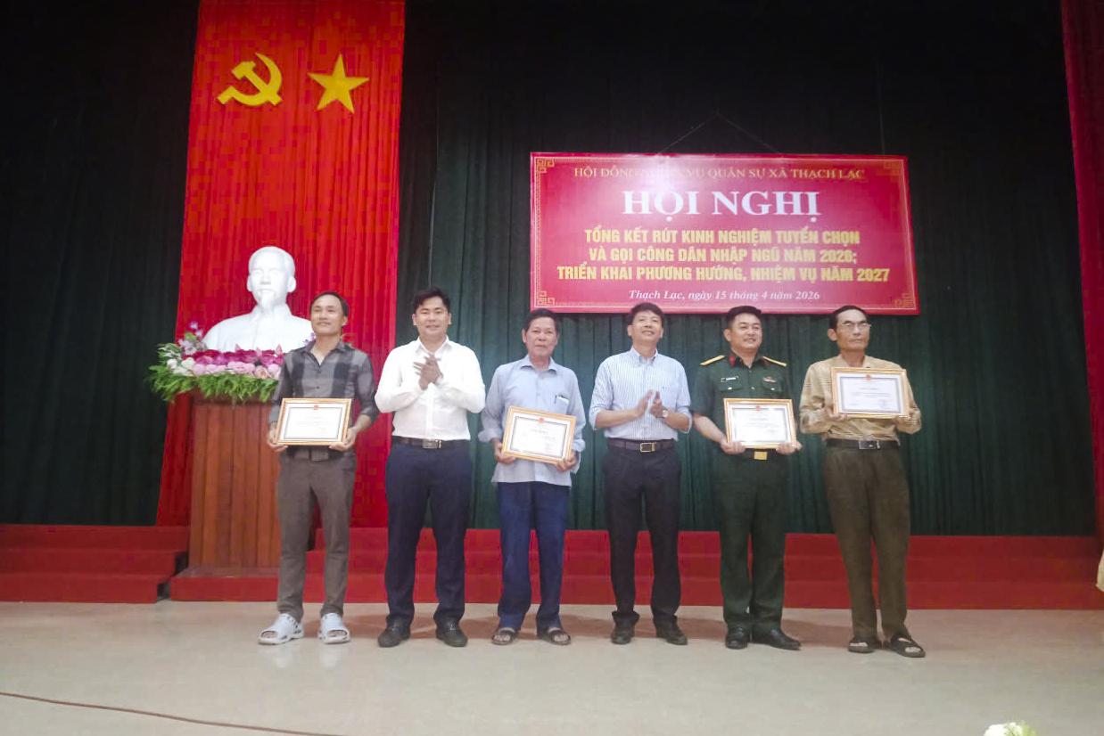Năm 2026, công tác tuyển chọn và gọi công dân nhập ngũ của xã Thạch Lạc đạt nhiều kết quả nổi bật, hoàn thành toàn diện các chỉ tiêu được giao. Qua rà soát, toàn xã có 652 công dân trong độ tuổi sẵn sàng nhập ngũ; trong đó 123 thanh niên tham gia sơ tuyển, 80 công dân được gọi khám tuyển cấp trên và 35 công dân trúng tuyển.