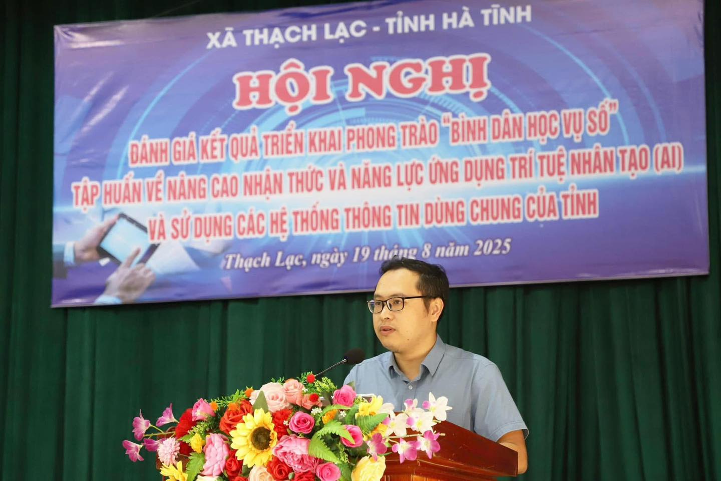 Sau 01 tháng triển khai phong trào “Bình dân học vụ số”, đến nay toàn xã Thạch Lạc có 10 đơn vị gồm Khối Đảng ủy, HĐND, UBND, UBMTTQ; Trường THCS Thắng Tượng; 3 trường Tiểu học; 3 trường Mầm Non; 3 Trạm y tế đóng trên địa bàn với 225 tài khoản được cấp trên tổng số 254 cán bộ, công chức, viên chức người lao động trên địa bàn toàn xã. 100% cán bộ, viên chức xã đã hoàn thành xong 2 khoá học bắt buộc.