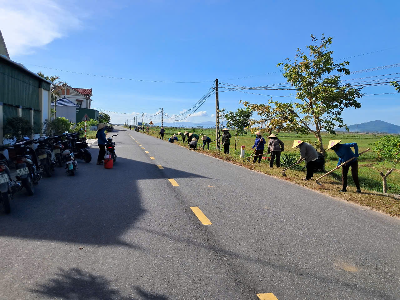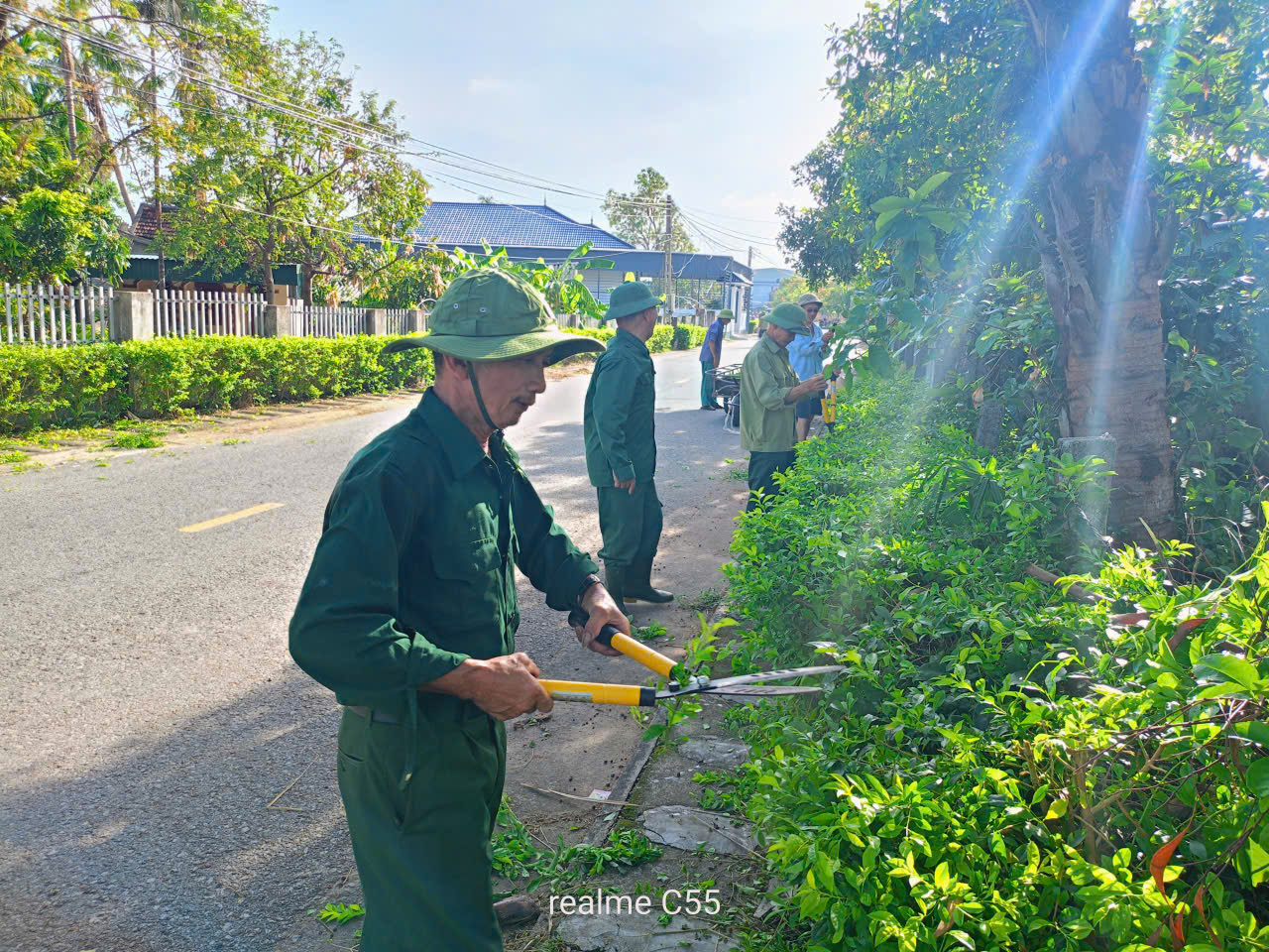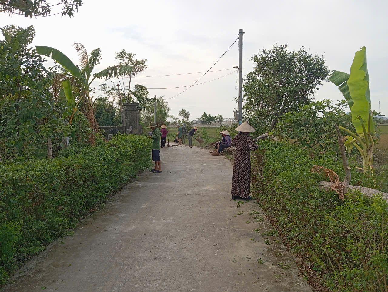 Nhân dân trên địa bàn toàn xã tích cực ra quân chỉnh trang xây dựng nông thôn mới: tổng dọn vệ sinh, đường làng ngõ xóm, cắt tỉa hàng rào xanh, chỉnh trang vườn hộ tạo nên cảnh quan xanh, sạch, đẹp