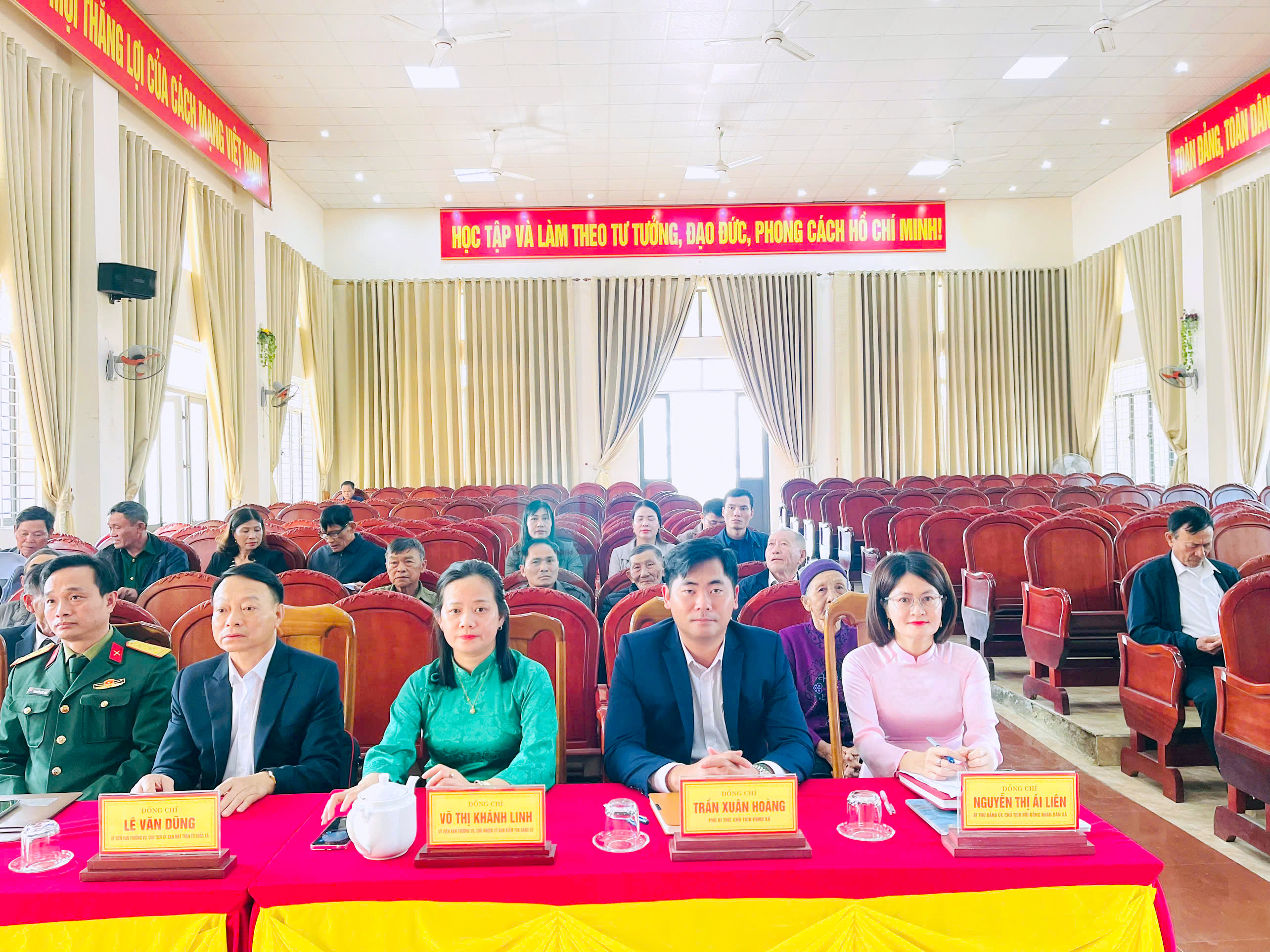 Dự buổi lễ có các đồng chí: Nguyễn Thị Ái Liên – Bí thư Đảng ủy, Chủ tịch HĐND xã; Trương Đình Dũng – Phó Bí thư Thường trực Đảng ủy; Trần Xuân Hoàng – Phó Bí thư Đảng ủy, Chủ tịch UBND xã;, cùng các đồng chí trong Ban Thường vụ Đảng ủy, lãnh đạo các ban xây dựng Đảng.