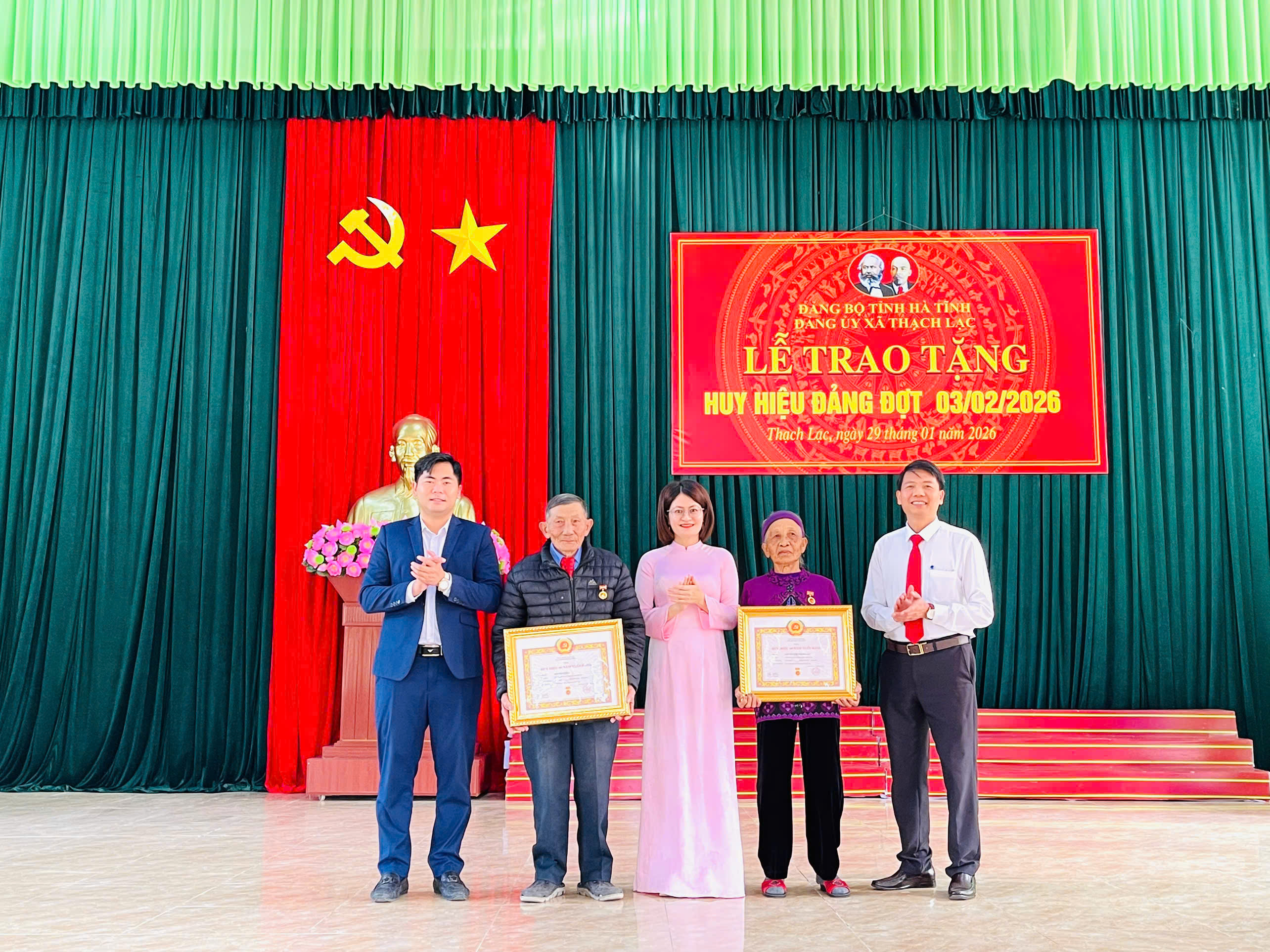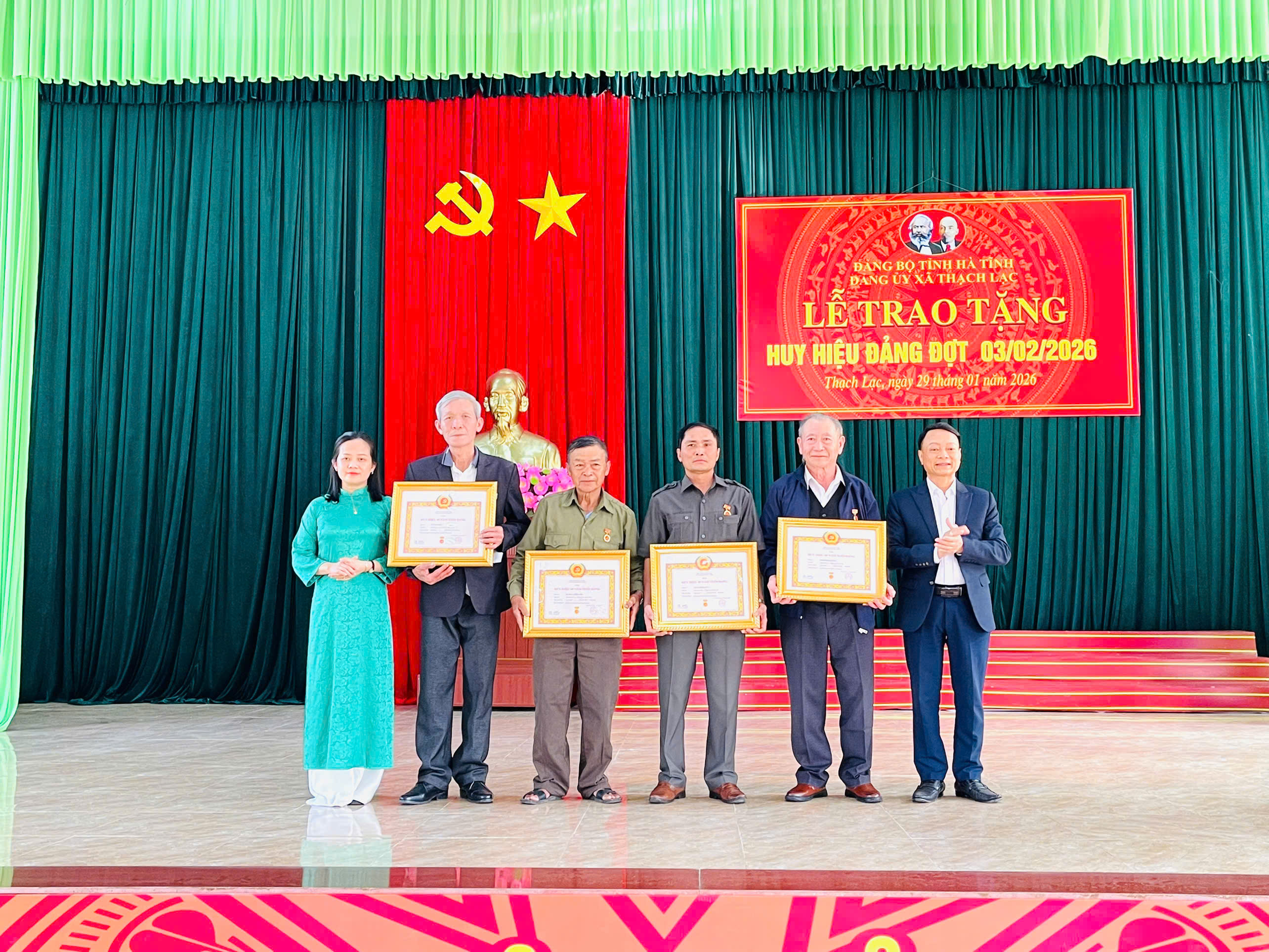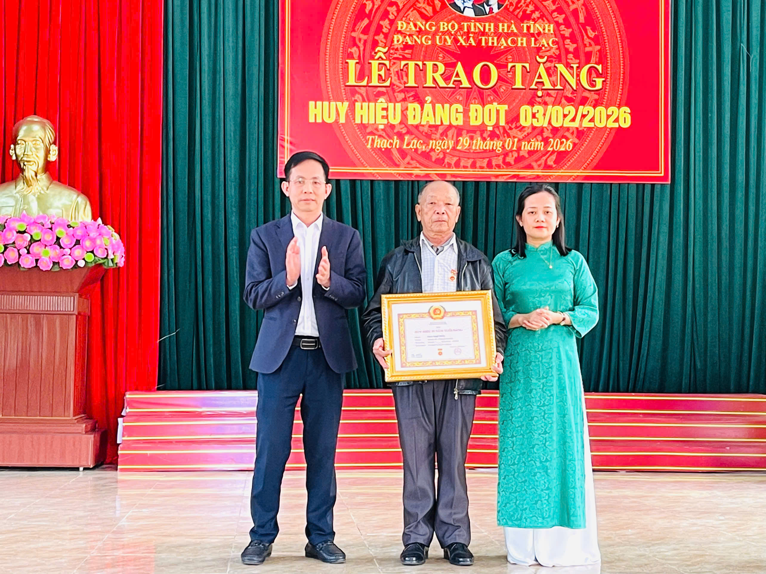 Đợt này, toàn Đảng bộ xã có 15 đảng viên vinh dự được trao tặng Huy hiệu Đảng, với các mốc từ 30 năm đến 65 năm tuổi Đảng. Trong đó có 1 đồng chí nhận Huy hiệu 65 năm tuổi Đảng; 2 đồng chí 60 năm; 1 đồng chí 55 năm; 2 đồng chí 50 năm; 1 đồng chí 45 năm; 4 đồng chí 40 năm và 3 đồng chí 30 năm tuổi Đảng. Truy tặng huy hiệu 60 năm cho 1 đồng chí.