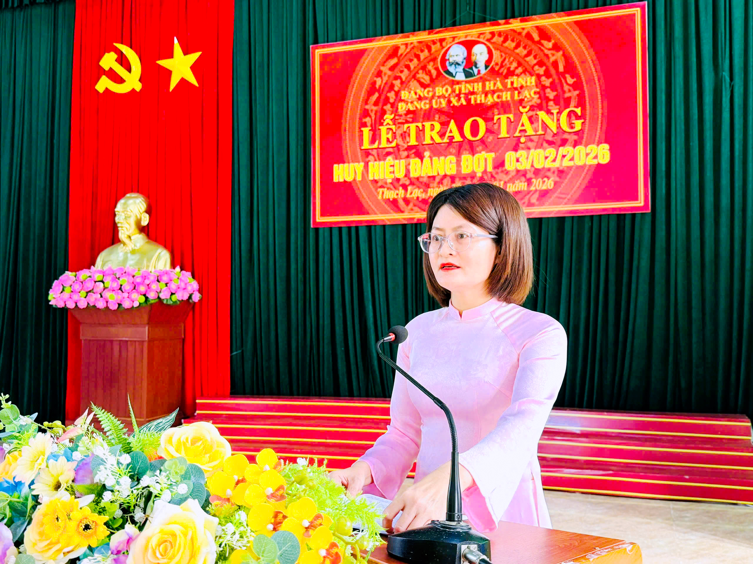 Phát biểu tại buổi lễ, đồng chí Bí thư Đảng ủy Nguyễn Thị Ái Liên chúc mừng các đảng viên được nhận Huy hiệu Đảng, đồng thời khẳng định đây là sự ghi nhận của Đảng đối với quá trình cống hiến, rèn luyện không ngừng của các đảng viên, đồng chí cũng thông tin thêm với các đảng viên về tình hình thực hiện nhiệm vụ, KTXH – ANPQ của địa phương. Đồng thời, mong muốn các đảng viên tiếp tục phát huy phẩm chất cách mạng, nêu gương sáng cho thế hệ trẻ noi theo, góp phần xây dựng Đảng bộ xã Thạch Lạc ngày càng trong sạch, vững mạnh.
